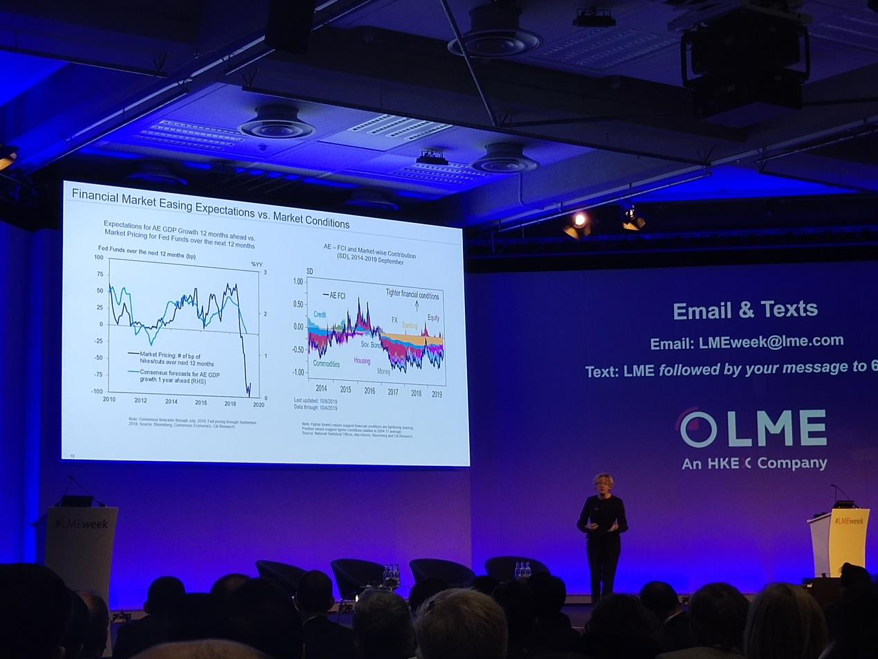 發(fā)稿時間:2019-10-312019年10月28日,一年一度的LME WEEK在英國倫敦正式召開。上海金屬網(wǎng)對本次LME WEEK進行全程報道,本文將為您帶來LME金屬研討會上的花旗銀行全球首席經(jīng)濟學家Catherine Mann關(guān)于“全球經(jīng)濟展望”的演講: